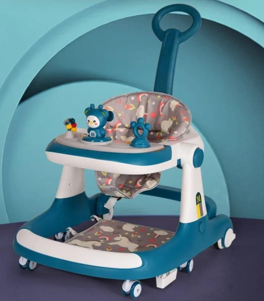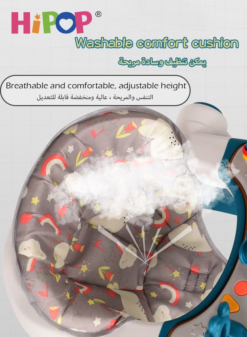 The baby walker has a height adjustable feature with a three-gear adjustable cushion to suit the baby's height, making it comfortable and safe to use. Parent push handlebars: Parent push handlebars are a great feature that allows parents to maneuver and control the baby walker, making it easier to guide their children as they explore and learn to walk. Large comfortable cushion: Baby walkers have a large and comfortable cushion that provides plenty of support and cushioning for your baby as they sit and play in the walker. Safe and reliable: Baby walkers are designed with safety in mind, and the sturdy frame and wheels provide stability and support during your baby's first steps. The braking system ensures that the walker stays in place when not in use.